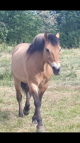 Norwegerjährling von 10/2024 in allerbeste Hände zu vermitteln. Jari wohnt mit seinen gleichaltrigen Halbbrüdern in gemischter Herde. Er wird regelmäßig entwurmt, ist geimpft, hat einen Pass. Sein Futter wird seit dem Absetzen nach Futteranalyse (Heuanalyse, Blutbild) bestmöglich supplementiert. Er kennt den Hufschmied persönlich und findet ihn gut, ebenso den Tierarzt. Jari hat bereits im Rahmen seines Alters viele grundlegende Dinge kennengelernt, er kennt Autobahnbrücken, Trecker, Hunde, Wasser, Osterfeuer, Hänger, viele Kinder, etc. Er ist sehr fein im Umgang und sehr gelassen und klar. Zur weiteren Ausbildung (z.b. in Richtung TGI) könnte er hier stehen bleiben.