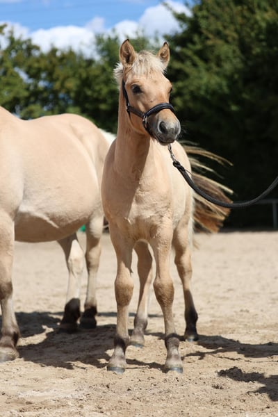 Ich verkaufe mein diesjähriges prämiertes Hengstfohlen. Name: Tobsi Geburtsdatum: 18.05.2025 Mutter: Staatsprämienstute vikkelsøes Tinde Muttervater: Bundesprämienhengst Fjordbækkens Sidan Vater: Prämienhengst The Cure Er ist ein aufgewecktes, zutrauliches Kerlchen mit sehr schönem Köpfchen. Tobsi kennt das Fohlen ABC. Auf der diesjährigen Fohlenschau in Offenthal wurde er prämiert. Laufvideos kann ich auf Anfrage gerne senden.