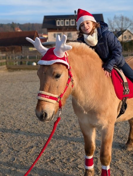 Unser Norweger Wallach Neptun sucht ein neues Zuhause. Der freundliche Wallach ist 3,5 Jahre alt und hat aktuell ein Stm von 1.41m. Neptun läuft brav in allen Gangarten auf dem Platz und im Gelände. Für sein Alter einfach ein tolles Pony. Auf dem Platz ist er auch von Kindern und schwächeren Reitern zu händeln. Im Gelände ist er fleißig, jedoch unerschrocken und nervenstark. Er geht auch ohne Probleme allein vom Stall weg. Braucht dann jedoch einen klaren Reiter der ihn gut begleiten kann. Ich könnte ihn mir gut als Wanderreitpferd vorstellen da er einen tollen, raumgreifenden Schritt hat. Auch als Therapiepferd würde er sicher eine gute Figur machen da er die nötige Ruhe mitbringt. Das Pony wäre auch toll für ein Mutter Kind gespann, da er durch seine Statur auch Erwachsene gut abdeckt. Er wurde auch schon ein paar Mal zweispännig gefahren was er gut macht. Der verspielte Wallach steht aktuell nachts in der Box und am Tag auf der Weide. Er wurde regelmäßig entwurmt und dem Hufschmied vorgestellt ( er läuft Barhuf)