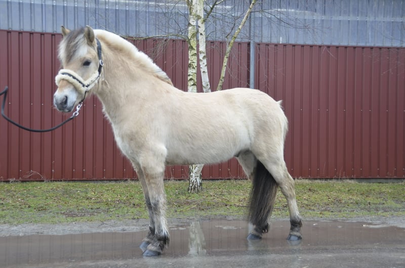 Tio ist unser schicker und freundlicher Fjordwallach. Er ist 5 Jahre alt (08/2021) und ca. 1,43m groß, mit seinem kräftigen Fundament und guter Gurtentiefe deckt er sehr gut ab. Er verfügt über drei überdurchschnittlich gute Grundgangarten. Tio stammt aus unserer familiären und qualitätsvollen Fjordpferdezucht- er kommt also aus aller erster Züchterhand. Sein Vater ist der Bundesprämienhengst Trollfin, er war Siegerhengst der norwegischen Körung und Siegerhengst der fn Bundeshengstschau 2022. Sein Großvater ist unser selbstgezogener Elitehengst Isidor. Tio wurde von uns schonend angeritten und lässt sich in allen 3 Grundgangarten sicher reiten. Er hat viel Spaß bei der Arbeit und ist immer motiviert. Er ist leichtrittig, hört auf feine Hilfen und geht fleißig vorwärts. Tio geht sicher ins Gelände und ist unerschrocken im Straßenverkehr. Er kennt neben der Dressurarbeit bereits Stangenarbeit und macht kleine Sprünge unterm Reiter. Wenn Sie mehr zu Tio erfahren möchten, rufen Sie uns gerne an! (Mobil: 01575 39 37 559 oder Festnetz 04535 2377)