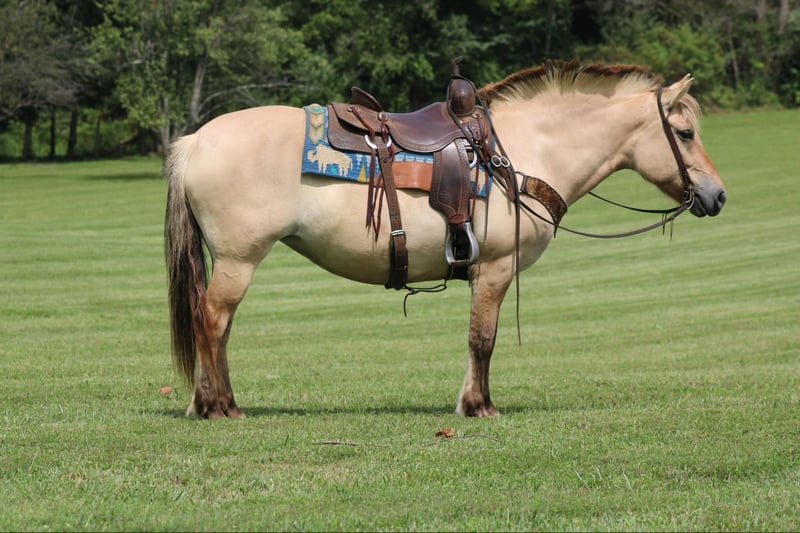 ONLINE AUCTION Place your bids at www.PlatinumEquineAuction.com Starting Bid $3500 Auction ends August 18th, 2024 Need a new saddle? Check out White Rock Saddles on our website or Facebook! Azora is my 7 year old registered Fjord. Azora is standing at 14.1hh. She has been with me for a couple of years. She was just currently my dad’s trail mount who is an absolute beginner. Azora will take care of anyone you put on her back. My 6 year old brother has rode her all over the trails and our property! We have taken her in some parades and she did amazing. We have ponied small children off of her and given pony rides on her! She was in a small lesson program and has taught the basics to a lot of kids who are just starting out riding. Azora will stand at a mounting block and for you to tack her up! She loves to trail ride and will go all day long. We have taken her to several over night trail rides and she will tie out like a champ! Nothing phases her, walks through water, over logs, will lead or follow! Azora also loves the ring work! She will walk trot and canter both directions with ease! She’s easy to catch and wants to be in your pocket. She needs no maintenance at all. She is currently shod all the way around. Don’t miss out on my sweet Azora! Call Logan Smith 814-360-8894! Located In Rineyville Kentucky! ONLINE AUCTION Place your bids at www.PlatinumEquineAuction.com Starting Bid $3500 Auction ends August 18th, 2024 Need a new saddle? Check out White Rock Saddles on our website or Facebook!