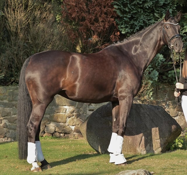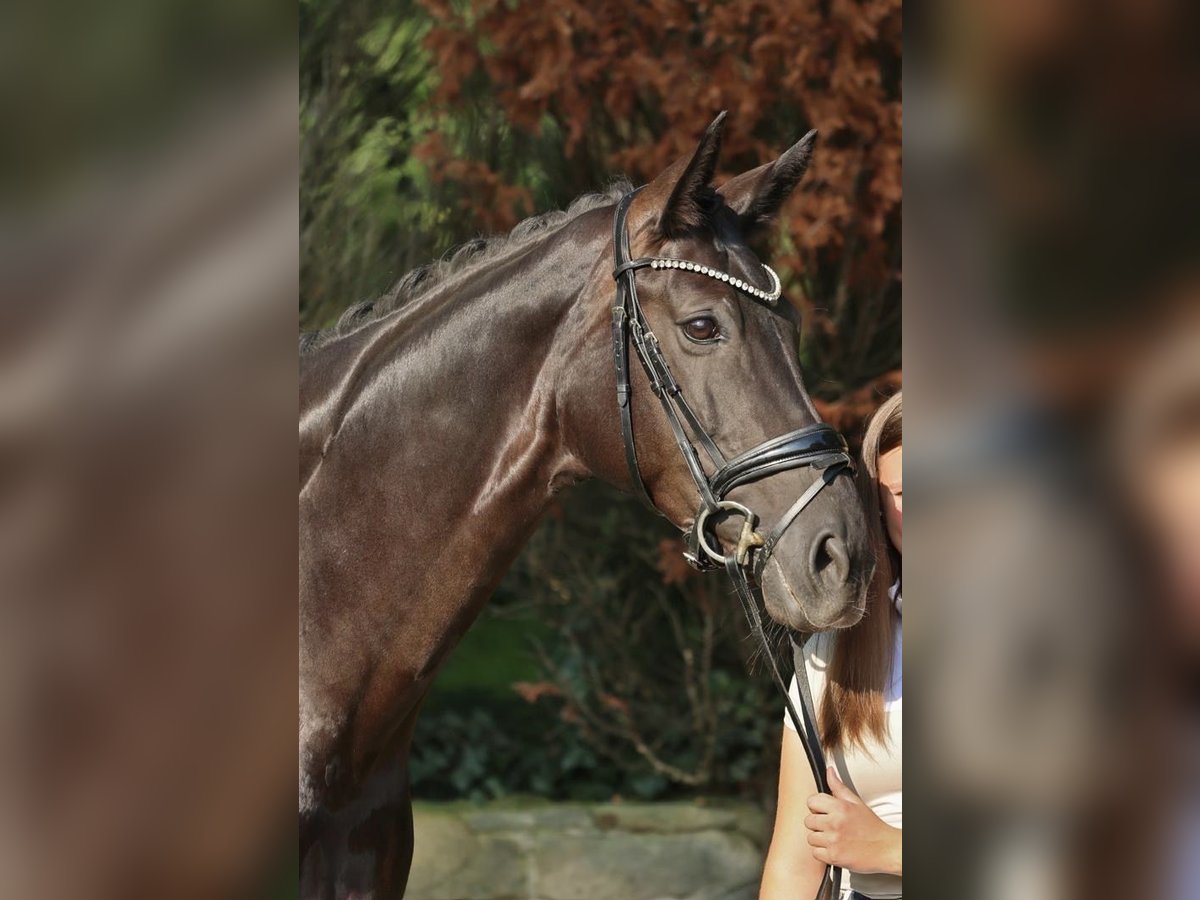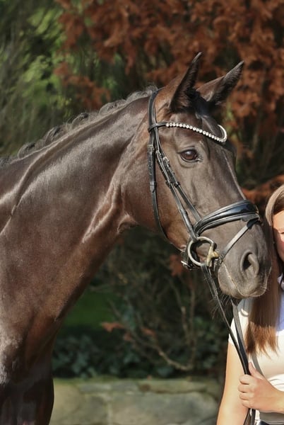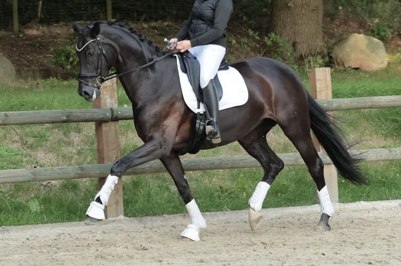 Schicke 10 jährige Rappstute 1.70 m groß A und L Dressur gewonnen und mehrfach platziert. Die Lektionen der Klasse M werden erst seit wenigen Wochen aktiv gefördert, da sie vorher ausschließlich von Amateur im L-Bereich geritten wurde. Sie lernt hier eifrig dazu und ist auf sehr guten Weg in die Klasse M. Sie punktet mit ihrer unkomplizierten und zuverlässigen Art und zeigt sich auch in fremder Umgebung absolut souverän. Natürlich ist sie schmiede- u. verladefromm. Ein guter Tüv liegt vor. Röntgenbilder können verschickt werden.