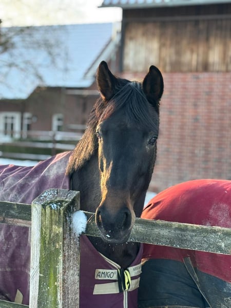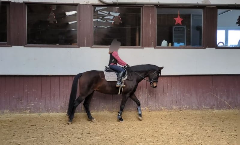 Zum Verkauf steht meine 10-jährige dunkelbraune Stute. Ich habe sie selbst vierjährig angeritten und bis vor 2,5 Jahren auch auf Turnieren in Dressur und Springen bis zur Klasse A vorgestellt. Auch kleine Geländehindernisse meistert sie mit Spaß und ohne Zögern. Seit Kurzem wird sie von einem 13-jährigen Mädchen mitgeritten, wobei sie sich geduldig und vorsichtig zeigt. Im Gelände ist sie in der Gruppe sicher und auch bei Urlauben in fremder Umgebung präsentierte sie sich unkompliziert. Die Stute benötigt regelmäßige Arbeit sowie den zusätzlichen Ausgleich auf der Wiese oder dem Paddock. Platz vor Preis!