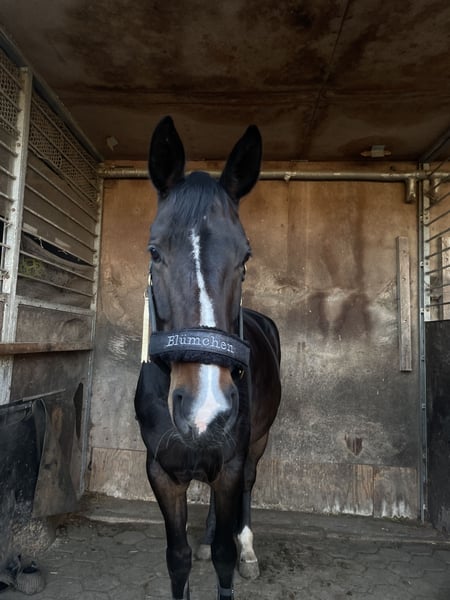 Unser „Blümchen“ (mit echtem Namen „B-Dur“) ist eine 10-jährige Hannoveraner Stute mit einem Charakter aus Gold und viel Eleganz. Im Umgang ist sie ein wahrer Schatz und stets angenehm im täglichen Handling. Sie ist dem Menschen sehr zugetan und ein richtig tolles und gesundes Allround-Pferd. Ob Dressurarbeit, Kuscheln, Bodenarbeit oder Ausritte, Blümchen ist immer motiviert dabei und zeigt sich überall brav und zuverlässig. Sie hatte bereits zwei Fohlen, weshalb ihre Ausbildung etwas später begonnen hat. Nichtsdestotrotz verfügt sie über drei sehr gute Grundgangarten, was sie mit ihrer L-Platzierung auf dem Turnier bereits unter Beweis gestellt hat. Somit ist sie L-Niveau und auf dem Weg zu M-Niveau. Da kann sie mehrere Lektionen auch schon recht sicher wie z.B. Traversale. Blümchen ist exzellent zu reiten und vermittelt stets ein angenehmes, sicheres Reitgefühl. Dies hat sie sicherlich auch ihrem Vater, dem Dressurvererber Belissimo M zu verdanken, der ihr Leistungsbereitschaft und hervorragende Bewegungsqualität mitgegeben hat. Zu Olympia konnte sie ihrer berühmten Halbschwester Bella Rose nicht folgen, aber das muss ja auch nicht sein. ;-) Darüber hinaus hat sie Freude an der Stangenarbeit und springt kleine Kreuze sowie Kombinationen und kleine Parcours. Wir wünschen uns für Blümchen ein liebevolles Zuhause, in dem sie weiter gefördert und wertgeschätzt wird. Reiter*innen mit Turnierambitionen und auch Jugendliche, die ein liebes Pferd zum Großwerden möchten, sehen wir als neue Besitzer. Für weitere Informationen und einen persönlichen Eindruck stehe ich gerne zur Verfügung.