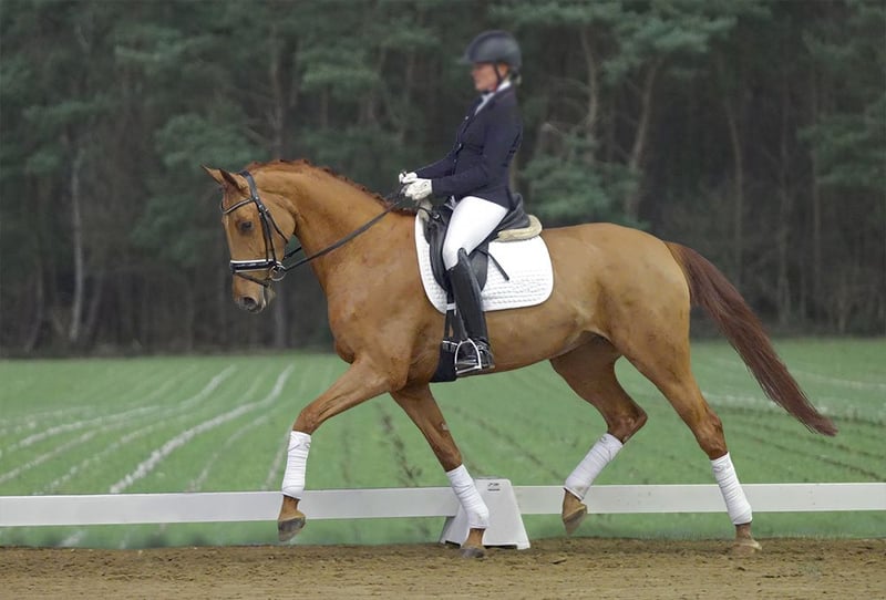 9yo Hanoverian chestnut mare, 1.72 st.*, easy to ride, very well ridden, this ballerina moves at L/M level, totally uncomplicated and easy to ride, with three above-average basic gaits Highly placed several times at elementary level!