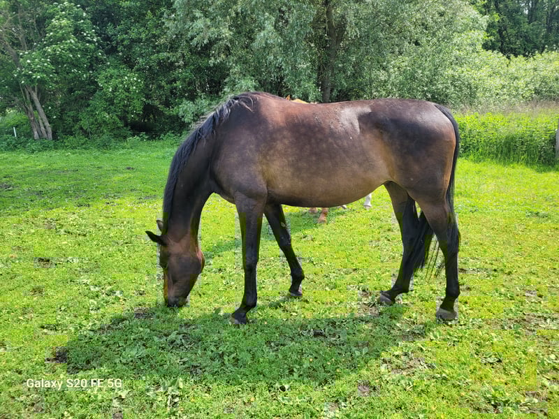 For sale is a Hanoverian mare. Due to her pedigree, she brings very good basic quality. At 4 and 5 years old, she was presented as a riding horse and dressage horse at the A level. A small veterinary examination from April 23rd shows no findings. Since May, she has been back under saddle and always wants to please. Very easy to ride, but not suitable for complete beginners. She had a foal in 2013 and 2014 with the previous owner. She is vaccinated, dewormed, and has been seen by an osteopath. She has no vices. Compatible with herds and low in rank. Currently, she is barefoot and manages very well with it. She not only impresses with her appearance but also with her loving character. She is very cuddly and absolutely affectionate, enjoying every little attention. To avoid riding tourism, I charge €20 for trial rides, which will be deducted from the purchase price.