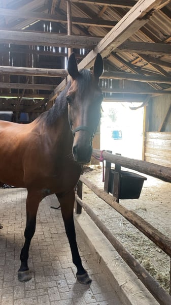 Bonjour, Nous mettons en vente une jument très douce mesurant 1,78 m. Elle est issue de Finest X Desperados, ce qui en fait également une excellente candidate pour la reproduction. Elle convient aussi parfaitement comme cheval de loisir. Elle présente une petite restriction, ce qui nous oblige à la vendre, car elle n’est pas adaptée au haut niveau du voltige. N’hésitez pas à nous contacter pour plus de détails. Des vidéos en mouvement peuvent également être envoyées sur demande. Le papier d’origine peut également être fourni sur demande. Les vaccinations, soins dentaires, etc., ont tous été récemment effectués. Le prix est négociable. Pour toute question, n’hésitez pas à nous contacter directement ! ☺️