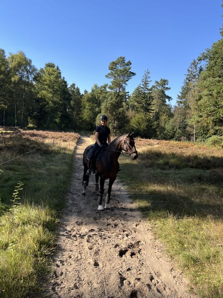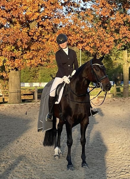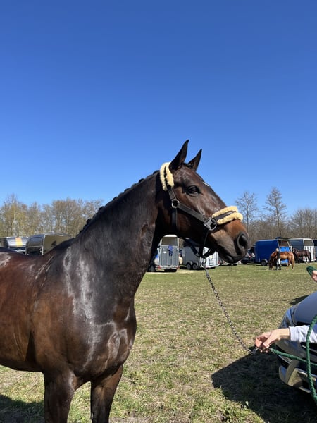We are looking for a loving new home for our 12-year-old mare. Deverelle is an elegant mare of medium size. She is well-behaved and reliable under saddle, with a good sense of sensitivity. She has solid, practical basic gaits and is easy to sit. She also enjoys hacking out and always proves to be trustworthy. Riding without a saddle or ground work pose no issues at all. She is a wonderful leisure partner who brings joy to every ride. She is very people-oriented and enjoys attention. She gets along well with other horses and is neither dominant nor submissive within the herd, settling comfortably in the middle rank. She shows no stallion-like or temperamental behavior in handling. Deverelle has been trained up to M-level dressage. Due to a phlegmon last year, her left hind leg is chronically swollen, but she is completely sound and soundness is not affected! She benefits greatly from plenty of turnout. We are selling her solely as a leisure horse and not as a competition horse. Deverelle was born here and has been in our exclusive ownership her entire life. We wish her a good new home where she can maintain regular contact with other horses and have consistent, at least hourly, turnout.