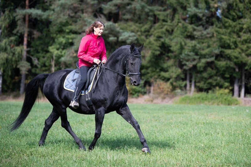 Elegante Hannoveranerstute sucht neue Aufgabe. 13 j. Rappe oh. Abz., 1.60 Stm. v. Londontime x Don Crusador. Sehr gute Grundgangarten, bildhübsch und ausdrucksvoll, sensibel und feinfühlig daher nicht für Anfänger geeignet. Bei stärkerem Wind wird sie ängstlich. Auch für die Zucht interessant. Hufschmied und Tierarzt kein Problem. Barhuf - kennt Hufschuhe. Sie liebt Bodenarbeit/ Freiarbeit und gemütliche Ausritte zu zweit od. auch alleine. Ich wünsche mir für sie einen einfühlsamen Umgang um dadurch ihr Vertrauen zu gewinnen. Sie wird nur abgegeben wenn die Chemie stimmt. Ideal wäre ein Aktivstall oder ähnliches. VB 7300 € Tel. 0160 97023965