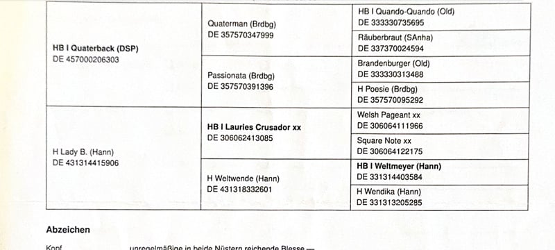 LADY BLAURIES CRUSADOR XXWeltwendeWELSH PAGEANT XXSQUARE NOTE XXWELTMEYER (HANN)Wendika