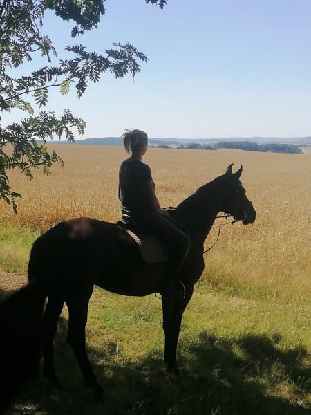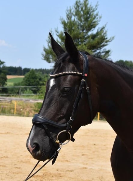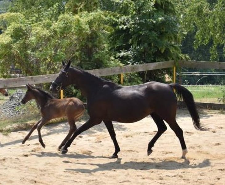 Biete hier diese schicke Rappstute als Freizeitpartner und Zuchtstute zum Kauf an. Sie wurde von mir in der Freizeit geritten, Gelände immer zu zweit. Sie ist dabei immer brav und zeigt keinerlei Unarten. Nicht für Anfänger geeignet, da sie etwas zappelig ist Ihre Abstammung lässt keine Wünsche offen. Sir Donnerhall l,World Cup l und Pik Bube l zeugen für bestes Blut. Zwei Nachkommen können vor Ort besichtigt werden.