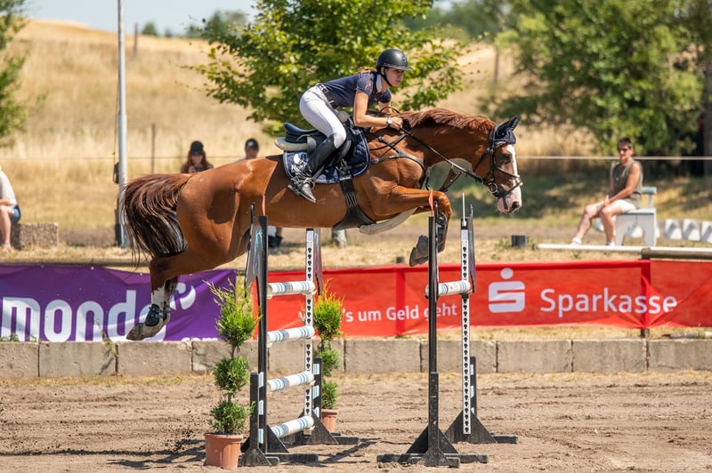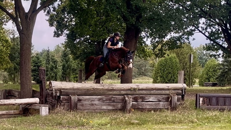 Bella Luna 15 is a 13-year-old mare standing at 16.1 hh, sired by Balou du Rouet out of Escudo I x Wanderer. We acquired her in 2021 when she was 9 years old, and since then, she has been successfully competing in youth amateur show jumping, placing multiple times and winning several small classes. Luna is a very ambitious, talented, and honest horse with a pleasant go in the arena. She always wants to please, whether at home, in dressage, or on trail rides (including cross-country). However, she is not suitable for beginners, as she can sometimes be a bit spooky when ridden. In handling, she is very straightforward, which allowed me to go alone with her on trail rides and to competitions without issues. She also has no problem with free lunging or being ridden without a saddle. Naturally, she is farrier- and loading-friendly. Luna also comes from a very good Hanoverian lineage on her dam’s side, with two successful siblings in S-level dressage (one at 145 cm and the other at 140 cm), making her potentially interesting for breeding after her sporting career. She is being sold due to lack of time because of my medical studies. X-rays from January 2021 show no findings. This is not an emergency sale; Luna deserves a wonderful new home at a fair price.