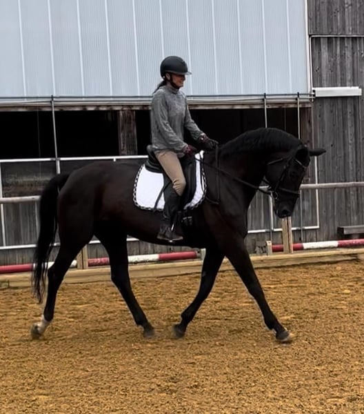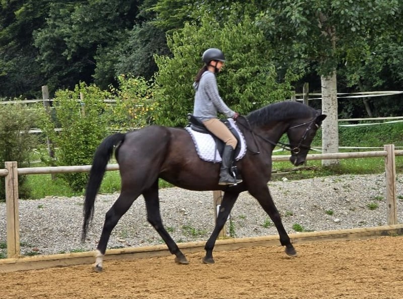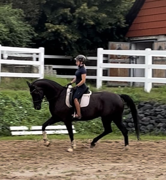 Wildrose is a beautiful, super brave 13-year-old mare with excellent dressage lineage and a wonderfully sweet, honest character. She possesses three outstanding basic gaits and an active hindquarters. She is exceptionally clear-minded, strong-willed, and remains calm and focused on her rider even in unfamiliar surroundings or situations. In handling, she is a treasure and very people-oriented and affectionate. She enjoys long grooming sessions and any kind of attention. Even children or inexperienced individuals can lead and groom her without any issues. Any bad habits are foreign to her, and she is very compatible with other horses. She is also familiar with living in a herd. However, when riding, she is not a beginner's horse, as she "wants to be ridden" and requires a very gentle hand. She is not suitable for anxious or insecure riders who hold on too tightly. Having spent several years in breeding, she is currently at a solid A level, with plenty of room for improvement. She is very obedient in pole work and enjoys going out into the countryside. We can also imagine her as a therapy horse. She loves being groomed or petted for hours and is very well-behaved and people-oriented in handling. She has been regularly vaccinated and has seen the dentist. X-rays from 2024 show no findings. A thorough veterinary examination from March 2025, before she was fully reintroduced to training, is also without findings. Currently, she lives in a box with daily year-round turnout. We wish for Wildrose a place where she is the number one for her people and enjoys full attention, as well as further development and engagement. Location: 82349 Krailling near Munich. A trial ride is possible upon request. Videos can be sent upon request.