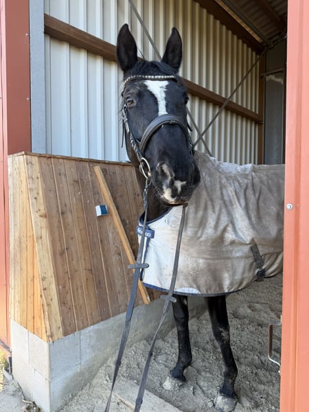 Unfortunately, due to unforeseen circumstances, I am heartbroken to seek a companion home for my mare Dahlia. She is a Hanoverian, 17.5 hands, 13 years old, and NOT suitable for breeding. Due to a medical condition, she is not rideable, but she can go for walks and be worked on the ground at a walk, during which she is completely unproblematic. In the paddock, she is free to move as she pleases. All information regarding her diagnosis, veterinary reports, etc., will be transparently shared with serious inquiries. She currently does not require any supplements or medications. At the moment, she lives in a large open stable with 24/7 hay, in a group of three, and feels very comfortable there. She is also used to coming in at night. She tends to be higher in the pecking order but is very fair and social. She shares her paddock well with a very low-ranking mare and a miniature shetland pony, even during shared feeding. Dahlia needs some time to settle into a new environment and to open her heart to a new person. Once she has done so, she is honest and affectionate. She is sensitive and can sometimes be a bit particular in handling. Farrier and veterinarian visits are generally possible, but depending on her mood, they may require patience. When tied up, she may dance a little, but she usually stands still and enjoys grooming. Dahlia is looking for a home with experienced horse people who have patience and will accept her as she is, without performance expectations. Once she trusts her handler, she is a very honest and extremely affectionate mare. Dahlia means a lot to me, and her future home is very important. I am aware that she is not a horse for high demands, and I especially wish for people who want to give her a wonderful life and enjoy spending time with her.
