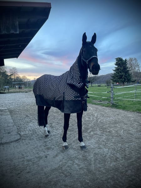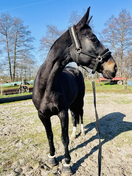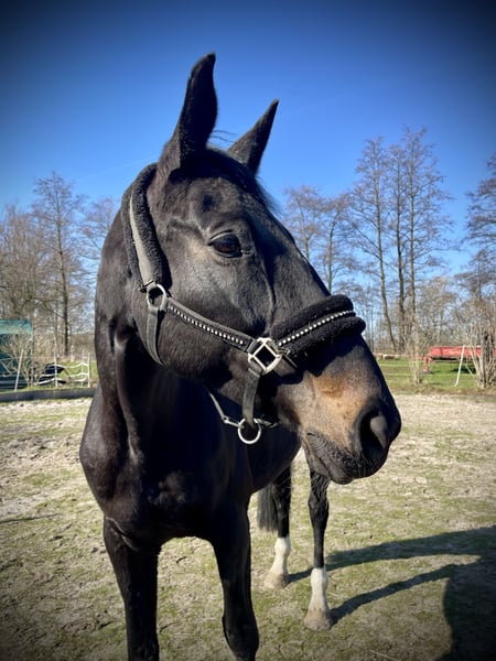 Ich verkaufe meine wunderschöne, großrahmige schwarze Stute. Sie ist ein echter Blickfang und überzeugt nicht nur durch ihre Erscheinung, sondern auch durch ihren tollen Charakter. Aktuell trägt sie vorne Eisen und ist aufgrund von Zeitmangel meinerseits momentan nicht im Training. Sie ist jedoch sehr gut vom Boden aus gearbeitet und zeigt sich stets brav im Umgang – sowohl beim Schmied als auch beim Tierarzt ist sie absolut unkompliziert. Die Stute ist aufmerksam und schaut sich ihre Umgebung gerne einmal genauer an, bleibt dabei aber immer gut händelbar. Besonders hervorzuheben sind ihre raumgreifende, schönen Gänge. Auch für die Zucht ist sie bestens geeignet: Sie hat bereits drei gesunde Fohlen zur Welt gebracht und sich dabei als zuverlässige Mutter erwiesen. Bei ernsthaftem Interesse oder weiteren Fragen freue ich mich über eine Nachricht.