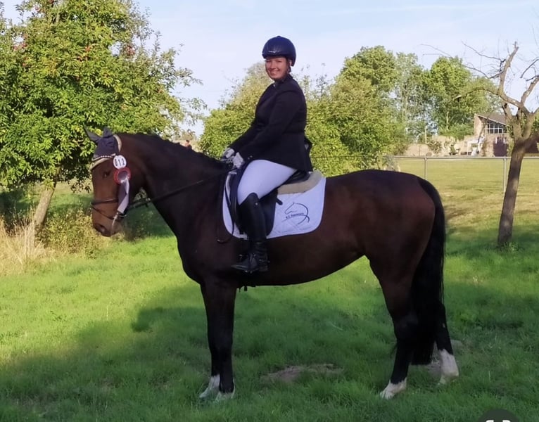 Schweren Herzens trenne ich mich von meiner Stute Delicia (geb. 2012, ca. 1,64 m). Ich kenne sie bereits, seit sie zweieinhalb Jahre alt ist und sie war mir all die Jahre eine treue Begleiterin. Delicia ist eine außergewöhnlich liebenswerte, verschmuste und zuverlässige Stute mit einem ruhigen, ausgeglichenen Charakter. Sie zeigt sich in allen Situationen absolut nervenstark und gelassen – egal ob in der Halle, auf dem Platz oder bei Ausritten ins Gelände. Leistung: • Dressur: bis L platziert • Springen: bis A platziert Delicia ist schmiede- und verladefromm, barhuf und dabei sehr sitzbequem. Sie macht bei allem, was man mit einem Pferd so unternimmt, immer motiviert und gelassen mit. Durch ihre Erfahrung eignet sie sich sowohl als Freizeitpferd als auch für Reiter:innen, die in den Turniersport einsteigen möchten – egal ob in der Dressur oder im Springen. Sie geht alleine und in der Gruppe ins Gelände. Im Umgang mit anderen Pferden zeigt sie sich zunächst skeptisch, hat sie aber ihren festen Pferdepartner gefunden, sind die beiden unzertrennlich. Da ich mich entschieden habe, mit einem jungen Pferd noch einmal neu zu starten und leider keine zwei Pferde gleichzeitig halten kann, wünsche ich mir für Delicia nun ein liebevolles Zuhause, in dem sie geschätzt und gefördert wird. Delicia wird nur in allerbeste Hände abgegeben und ich wünsche mir sehr, dass sie dort ihren endgültigen Platz fürs Leben findet. Sie wird nur verkauft, wenn alles passt! Bei Interesse oder weiteren Fragen freue ich mich über eine Nachricht.