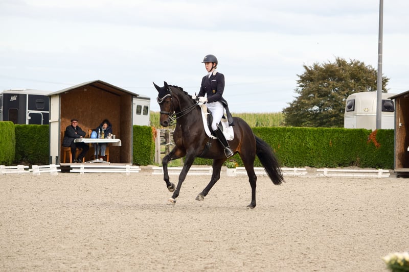 We are offering a beautiful Hanoverian mare by Dancier out of Brentano II for sale, renowned for her elegance in the dressage arena. - **Breed:** Hanoverian - **Gender:** Mare - **Year of Birth:** 2012 - **Color:** Dark Brown - **Height:** 16.1 hh - **Discipline:** Dressage This mare impresses not only with her appearance but also with her temperament and willingness to perform. Her comfortable size makes her especially suitable for young riders or amateurs aiming to compete in L* and L** level dressage. Together with her rider, she has achieved victories in M** and placements in S*. Additionally, she has successfully competed in the Amateur Tour for riders over 40, achieving results in L* and L** classes. If you are interested, we look forward to hearing from you for more information or to arrange a viewing.