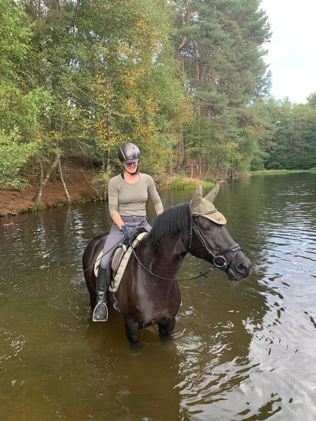 Con mucho pesar, vendo a mi yegua Hannoverana de 15 años, que ha estado en mi posesión durante los últimos 12 años y a la que he criado con mucho cariño. Es un caballo de ocio fantástico y confiable, especialmente en el campo es absolutamente segura. En su trato es sencilla, cercana a las personas y siempre motivada para trabajar. Le encanta el trabajo en el suelo, los paseos largos y no tiene problema en montar sin silla. En el suelo, a veces se muestra un poco terca, pero siempre es manejable. También ha sido montada en competiciones de doma clásica. Sin embargo, debido a una artrosis en la parte derecha delantera, solo se la ha utilizado para ocio. La artrosis no le limita mucho, simplemente ya no le gusta que la longen o que la hagan saltar. En 2019, tuvo un hermoso potro de cría con Benicio. Debido a su linaje, también es interesante para la reproducción. Si todo encaja, estaría dispuesta a cederla. Venta solo a manos experimentadas y responsables. No a escuelas de equitación ni a comerciantes.