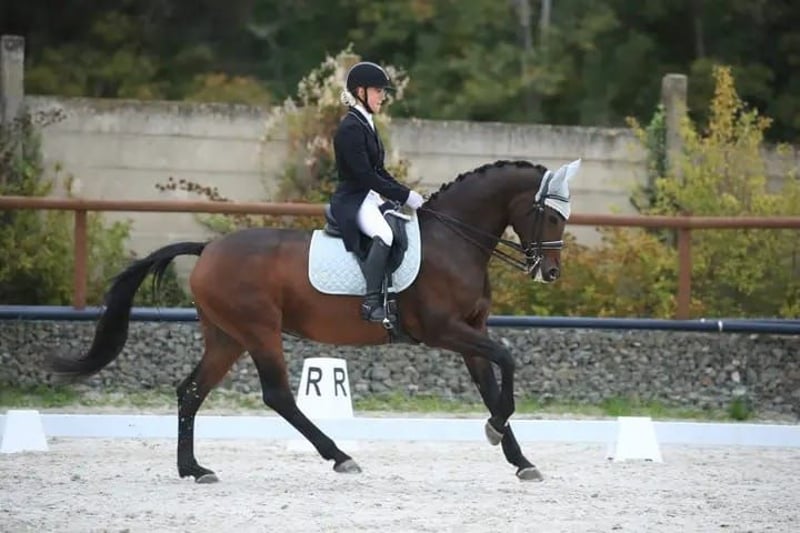 Viva is a stunning Hanoverian mare by Vivaldi, out of a mare by Osmium (Elite Award in the Netherlands). At the age of three, Viva was awarded keur credentials in the Netherlands, making her a promising candidate for breeding as well. Since 2020, she has been competing in the Czech Republic with a young rider who initially took her over as a young horse. Together, they have achieved all levels up to M**. Viva has taught her rider everything, and now the time has come for a new rider to benefit from her talent and experience. She is easy to ride, with a steady connection, moves pleasantly and naturally forward, and is sit-friendly. She is not spooky or nervous and does not exhibit any bad habits such as bucking or rearing. She performs consistently at competitions just as she does at home. Viva has a kind character and enjoys daily turnout and trail rides in the field. She is healthy, has had no issues during her competition career, and her older X-ray images are flawless. We have several other interesting horses in our other listings. If you are looking for something different, please feel free to contact us. Want to see what makes us stand out? Visit our Facebook page, where you can also find reviews from our international clients.