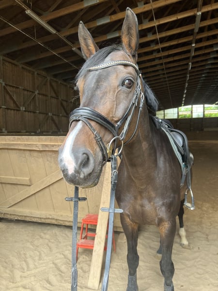 Chianti – Jument Hannoverienne, 14 ans - Origine (dernière photo) Chianti est une jument Hannoverienne d’environ 1,69 m, qui séduit non seulement par son allure élégante, mais surtout par son tempérament exceptionnellement affectueux et proche de l’humain. Ceux qui la rencontrent remarquent immédiatement : cette jument est un véritable ange. Au quotidien, Chianti se montre extrêmement amicale, douce et fiable. Elle est facile à charger, ferrée, sûre en circulation et facile à manipuler. Elle est déjà ferrée à l’avant. Chianti a déjà acquis de l’expérience en troupeau, elle occupe une position plutôt basse dans la hiérarchie et s’adapte bien. Elle a passé plusieurs années chez Schockemöhle en tant que jument de reproduction dans un grand groupe. Sous la selle, Chianti se trouve au niveau A. Elle est confortable à monter, agréable à la selle et travaille avec motivation. Elle connaît aussi bien un saut d’obstacles qu’une selle de dressage et se laisse monter agréablement avec les deux. À noter : elle n’a jamais piaffé et se déplace sans problème en liberté dans le terrain, ce qui fait d’elle une monture fiable même pour des cavaliers moins expérimentés. Elle aime aussi faire de petits sauts avec vous. Elle adore aller en forêt et apprécie le temps passé avec son cavalier. On peut aussi simplement faire une promenade en halter et longe ou la longéer. Chianti ne peut plus être utilisée comme cheval de compétition en raison de ses capacités physiques, mais elle convient parfaitement comme cheval de loisir fiable et jument de reproduction. Elle cherche une place aimante, idéalement en paddock, où elle pourra profiter de ses dernières années de vie et continuer à apporter de la joie. Elle préférerait être régulièrement sortie en balade à l’extérieur. Chianti est un cheval qu’on aime dès le premier instant – fidèle, doux et doté d’un incroyable attachement à l’humain. Elle mérite tout simplement ce qu’il y a de meilleur ❤️ En cas d’intérêt sérieux, je peux également envoyer des vidéos.