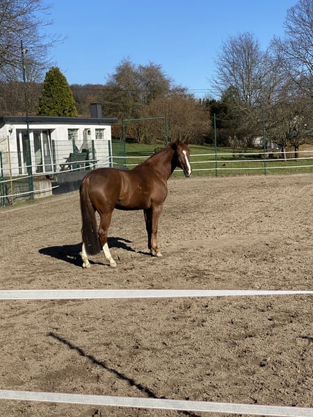 Heart horse with quality – Dressage mare with experience and an excellent character For sale is my 2011-born dressage mare (Hannoveraner, Münchhausen x Sandro Hit), approximately 17.2 hands tall, which I am reluctantly offering into the best hands solely due to time constraints. She is an absolute heart horse: very well-behaved, human-oriented, eager to please, and always up for fun. Not only does she impress with her lovable personality, but also with solid dressage training. She masters movements up to M/S level and has achieved competition success at L-level with a double bridle. Under saddle, she is uncomplicated, comfortable in the seat, and honest, making her an ideal school horse, competition partner, or a refined leisure horse – regardless of the rider’s age. She provides a lot of safety and joy and is also perfectly suited for ambitious amateurs. In handling, she is exemplary: - Loads easily onto the trailer - Gentle with the farrier and veterinarian - Healthy, regularly vaccinated, and well cared for She is very social, familiar with different husbandry systems, and feels especially comfortable when she can spend plenty of time outdoors. Currently, she enjoys her paddock box, which she appreciates very much. A home with appropriate facilities is explicitly desired. 📍 Location: 45549 Sprockhövel A forever home is sought where she will be loved, supported, and valued. No emergency sale. If genuinely interested, I look forward to a friendly contact.