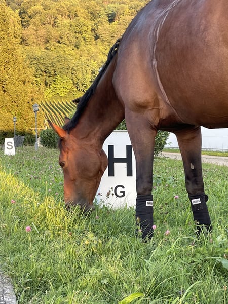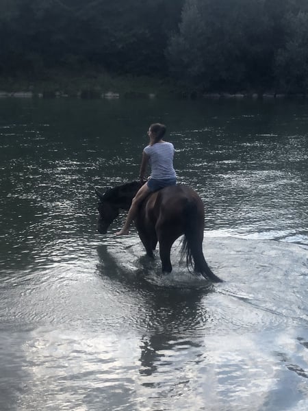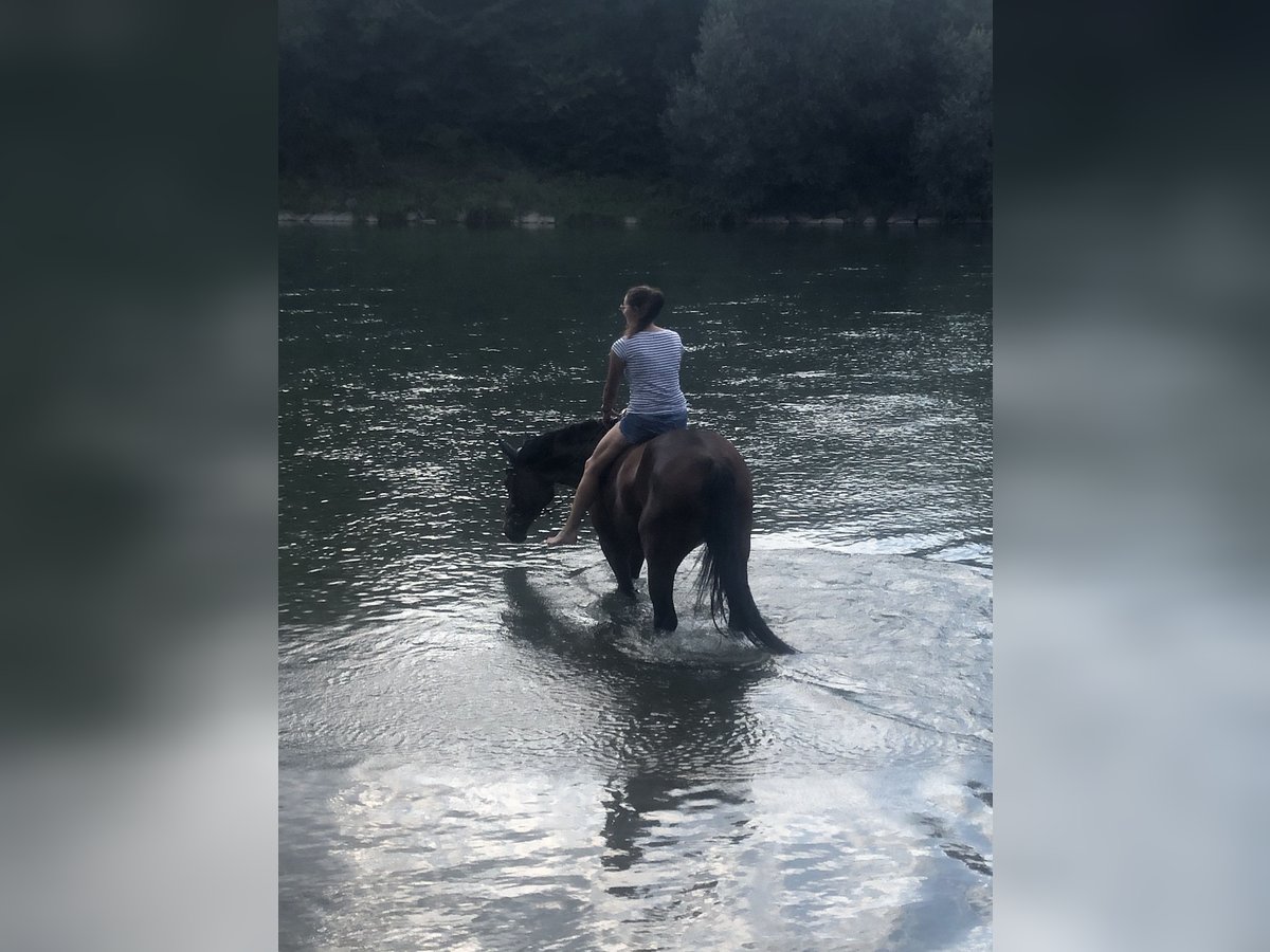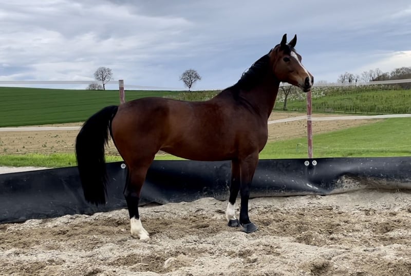 With a heavy heart, I am seeking a loving and suitable home for my 16-year-old mare, where she can continue to be exercised and engaged according to her abilities. In 2024, she was diagnosed with a chronic tendon injury, which limits her riding ability. Therefore, I am looking for a place where she can be individually worked with based on her daily condition. She is very well-trained from the ground, enjoys walks and free lunging, and shows motivation and sensitivity in hand in dressage work. She needs to be occupied, of course within her health limitations. She exhibits no bad habits such as bucking, rearing, or similar behaviors. In the field, she is very reliable and is familiar with cows, sheep, goats, tractors, and carriages. She can also be used as a lead pony—both for rides and alongside a carriage. She knows all of this :) If ridden more than just walk in the terrain, she can develop quite a bit of speed. Therefore, she is not suitable for beginners and should be handled by experienced riders. In terms of groundwork, she is less comfortable. On the riding arena or in the indoor school, she sometimes becomes quite resistant. Patience, consistent, calm work, and many walk-trot transitions are needed to get her moving forward. This is highly dependent on her daily condition and requires sensitivity and experience. What she doesn't particularly like is extensive grooming—typical mare behavior, and she can react a bit sassy during grooming. With clear, calm handling, this is manageable. Currently, she is shod with four shoes, with a special shoe on the hind legs to relieve the tendon, slightly elevated. After consultation with the veterinarian from VetCare, the hind shoes could be removed, and hoof boots used for trail riding. Her current location is Schliengen. She stays in a box at night. In summer, she is turned out during the day with a stable pasture companion, and in winter, she is on secured paddocks with a shelter, also with her partner. This is not an urgent sale. The right home is more important to me than the price. Rehoming only with a protection contract. If you are genuinely interested and have further questions, I look forward to hearing from you.