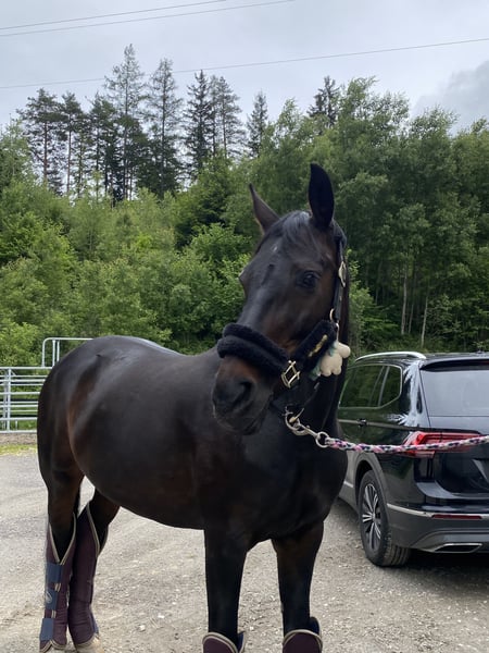 With a heavy heart, I am seeking a new loving home for my 15-year-old stunning Hanoverian mare, "Malia." She has achieved placements in A and L dressage and is looking for a leisure rider with experience. The reason for parting with her is that I want to continue competing, but she is not suited to the pressure of training and competition, and I no longer want to burden her with that. Therefore, I see her best in a stress-free recreational setting. The mare has a sensitive back and abdominal area (x-rays are unremarkable, and she has never had colic!), so she needs a break on pasture or paddock. Groundwork and lunging are possible! If you have patience, you will gain a wonderful leisure partner. As a former competition horse, she has been regularly vaccinated and dewormed. The farrier and dentist are no problem, and loading into the trailer is completely straightforward. She is well-behaved when hacking alone or in a group. She also shows no fear of bridges, water, or flags in working equitation. She has a lot of go (not suitable for beginners!) but remains always controllable. I am looking for a home where Malia can simply be a horse and where someone with experience will care for and engage with her. Her excellent pedigree also makes her suitable for breeding (she has already foaled two foals). Due to her current sensitivity, I am offering her at a reduced price! €7,000 VB – price is negotiable! More details gladly discussed in person!