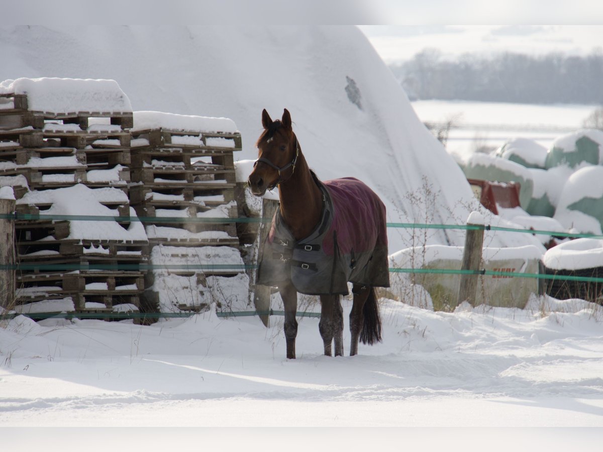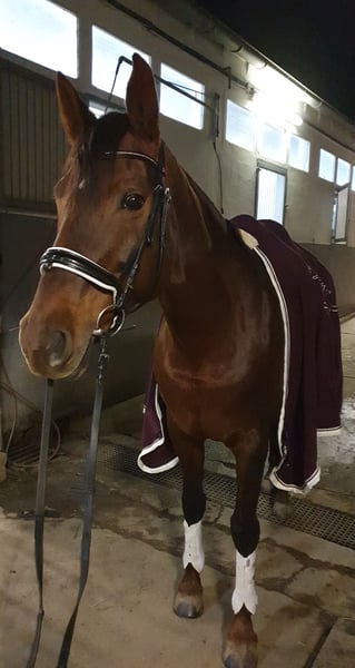 Aufgrund eines Pflegefalls in der Familie muss diese tolle Stute schweren Herzens in neue, gute Hände abgegeben werden. „Honey“, gen. „Hexe“, ist eine liebe Hannoveranerstute, die grds. alles gibt, um Aufgabenstellungen gerecht zu werden - egal ob vom Boden oder unter dem Sattel. Sie möchte jedoch gefordert und ausgelastet werden und testet stutentypisch auch mal ihren Reiter aus. Sie lernt gerne neues und dies auch schnell. Bei der Arbeit denkt sie stets mit. Hexe ist ehemaliges Springpferd. Ein wenig Turniererfahrung hat sie hier auch gesammelt. Nach einem Sehnenschaden am linken Vorderbein vor 6 Jahren ist sie wieder vollkommen fit, sollte jedoch keine hohen Sprünge mehr leisten müssen. Den Spaß am Springen und der Stangenarbeit hat sie nie verloren. Ausritte durch Wald und Feld liebt sie. Mit anderen Pferden kommt sie gut aus. Gegenüber Stuten zeigt sie sich dominant, Wallachen ordnet sie sich in der Regel unter. Kinder sind kein Problem. Hunde kennt sie. Für weitere Fotos/Videos/Informationen gerne einfach melden. Platz vor Preis. Kein Verkauf an Händler. Ausrüstung kann mit übernommen werden.
