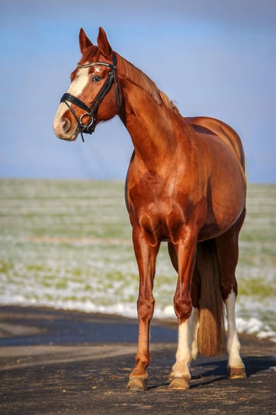 With a heavy heart, I am placing my wonderful mare into the best hands. Salü Cathrin is a 15-year-old mare that I have owned since 2016. Originally, Salü was intended as a dressage prospect and has performed very well under saddle; at age 8, she even won a M** Young Horse Competition. Unfortunately, she has suffered numerous injuries and still struggles with some issues, which is why she has not been ridden for nearly two years. (Including asthma, arthritic changes in the facet joints, and multiple tendon injuries). I am happy to provide detailed information about her medical history in private messages. Currently, she is recovering from a tendon injury on her front right leg near the fetlock (recently treated twice with PRP injections, and her healing looks quite good at the moment). Salü will only be rehomed as a companion horse! Whether she will ever be ridden again, under any circumstances, is completely uncertain. I wish for her to find a loving home with good conditions that accommodate all her limitations. She is barefoot and very easy to handle. We steam her hay, which she tolerates very well, and she no longer needs inhalation therapy. She is housed in a very large, open-stall-like XXL box. An indoor box would not be suitable for her. Salü has a good pedigree. Whether breeding with her makes sense given her health history should be evaluated by a veterinarian or equine specialist. Please only serious inquiries.