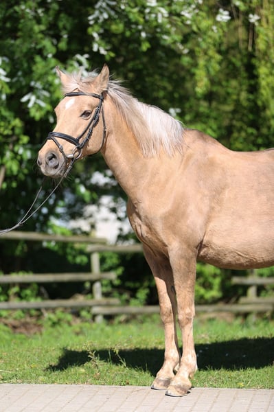 Sheila (Sugarbabe in the Dark) – entspannte Stute mit angenehmem Charakter Zum Verkauf steht die charmante Stute Sheila (Sugarbabe in the Dark), geboren 2009, mit einem geschätzten Stockmaß von ca. 1,45 m. Die erfahrene Stute überzeugt durch ihre ruhige und gelassene Art im täglichen Umgang. Sheila ist sowohl für Anfänger als auch für fortgeschrittene Reiter geeignet. Sie zeigt sich unter dem Sattel unkompliziert, gut händelbar und zuverlässig, ohne Unarten beim Reiten. Sie ist eher gemütlich unterwegs, lässt sich jedoch gut motivieren und arbeitet unter dem Reiter angenehm mit. Damit eignet sie sich besonders für Reiter, die ein ruhiges, ehrliches Pferd für entspannte Arbeit und Freizeit suchen. Im Umgang ist Sheila grundsätzlich brav, kann jedoch gelegentlich dazu neigen beim Putzen oder Satteln zu schnappen. Dies sollte entsprechend beachtet und im Handling klar, aber ruhig korrigiert werden. Eine freundliche Stute mit solider Grundausbildung und angenehmem Wesen für den täglichen Reiteinsatz. Sheila befindet sich nach einer Verletzungspause aufgrund einer Sehnenverletzung derzeit im Aufbau. Wir können derzeit nicht sagen, inwieweit sie in der Zukunft belastbar sein wird. Momentan wird mit ihr mehrmals die Woche leicht unter dem Sattel gearbeitet (Schritt/Trab/Galopp). Aufgrund der Ungewissheit möchten wir sie derzeit als bedingt reitbaren Beisteller abgeben.