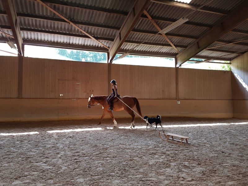 Suche für meine liebe Hannoveraner Stute einen Lebensplatz -Jg. 2009 -165 cm -Standort: SG -verträglich mit Stuten und Wallachen -Preis ist Nebensache, die Menschen und die Haltungsbedingungen müssen passen Sie kann ausgeritten werden am langen Zügel ohne Einschränkungen. Sie hat unfallbedingt seit 10 Jahren Probleme mit der seitlichen Biegung am Zügel, deshalb ist die Arbeit auf dem Platz nicht mehr gut für sie. Vom Tierarzt und Physio ist alles abgeklärt und sie meinen auch, dass Ausritte unbedingt wichtig sind für sie 🥰 Sie liebt lange Ausritte, ist sehr brav, wenn sie einem vertraut. Sie ist verkehrssicher und läuft überall durch. Das einzige, was ihr Mühe bereitet, sind rennende Kühe. Wenn man sie vorbeiführt, geht es besser, im Sattel sollte man sicher sein. Zu Fuss geht sie ganz brav am Halfter mit. Hunde liebt sie 😍 Sie braucht täglichen, längeren Auslauf mit Kumpels, da sie sich das gewöhnt ist. Sie war bisher unkompliziert mit verschiedenen Stuten und Wallachen. Ich gebe sie krankheitsbedingt ab und da der Stall sich auflöst, wo sie täglich viel draussen sein kann. Ich wünsche mir einen Platz, wo sie wieder viel Auslauf zur Verfügung hat und jemand sich liebevoll um sie kümmert.