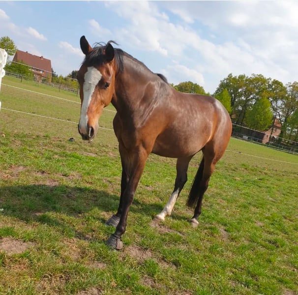 - geboren 17.04.2009 - 1,69cm - Contendros Bube x Albatros - brav, keine Unarten - Röntgenbilder aus 2021 liegen vor - voll reitbar - tragend für 06/2026 von Captain Jack Schweren Herzens habe ich mich dazu entschieden meine Lieblingsstute zu verkaufen. Ich habe sie 6j gekauft. Sie hatte seit 2019 insgesamt 4 Fohlen, sowohl von Dressur- als auch von Springhengsten. Das letzte ist aus diesem Jahr (Diamantenglanz) und noch in meinem Besitz. Sie ist KEIN Exemer, hat jedoch eine Allergie die zu 99,9% nicht vererbbar ist weshalb sie sich die Mähne scheuert und auf eine Exemerdecke angewiesen ist! Allergietests liegen vor. Sie hatte 2021 einen Fesselträgerschaden und wurde dann auch 1,5 nicht geritten, somit konnte dieser heilen. Gerne darf der Haustierarzt vor Kaufabschluss über alle vergangenen Behandlungen befragt werden. Es gilt absolut: Platz vor Preis! Nehme auch gerne Preisvorschläge entgegen. Die Stute kann auch günstiger ohne Fohlen erworben werden. Für alles weitere freue ich mich über eine Nachricht.