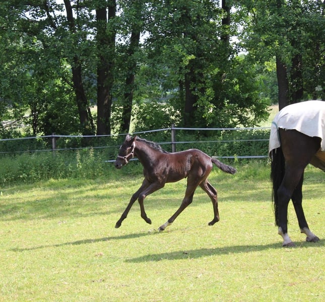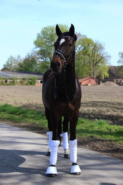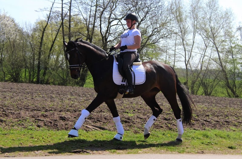Urodzona 17.04.2009 Wysokość: 1,69 m Contendros Bube x Albatros Dobrze usposobiona, bez niepożądanych zachowań Zdjęcia rentgenowskie z 2021 roku dostępne W pełni nadająca się do jazdy W ciąży na czerwiec 2026 z Captain Jack Z ciężkim sercem zdecydowałam się sprzedać moją ulubioną klacz. Kupiona przeze mnie w wieku 6 lat. Od 2019 roku miała łącznie 4 źrebięta, zarówno od koni skokowych, jak i ujeżdżeniowych. Ostatnie z nich to Diamantenglanz z tego roku, które nadal jest w moim posiadaniu. Nie jest to exmoorka, jednak ma alergię, która w 99,9% nie jest dziedziczna, dlatego drapie się po grzywie i jest zmuszona do stosowania specjalnej derki przeciwalergicznej. Testy alergiczne są dostępne. W 2021 roku miała uraz ścięgna podudzia, przez co przez 1,5 roku nie była użytkowana w jeździe, co pozwoliło na jej wygojenie. Chętnie przed zakupem można skonsultować się z weterynarzem w sprawie wszystkich wcześniejszych leczeń. Priorytetem jest dla mnie dobro konia, nie cena. Wszystkie pytania chętnie przyjmę przez wiadomość.