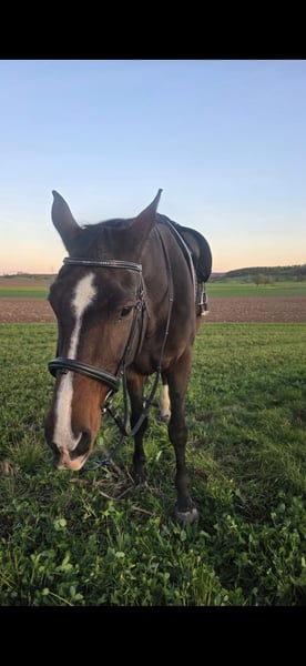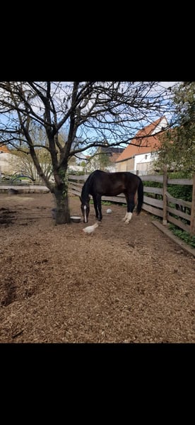 Wir verkaufen leider unsere Stute Diva. 16 Jahre, ca 170. Hannoveraner. Diva wurde aus einem Notverkauf übernommen. Da ihre Lieblingsdisziplin das Ausreiten ist, kommt sie leider als Schulpferd nicht in Frage. Sie ist eine dem Menschen zugewandte Stute, der man aber Zeit geben muss, sich an einem neuen Ort einzugewöhnen. Sie fügt sich super in eine gemischte Herde ein. Lässt sich aber auch da brav in alen 3 Grundgangarten reiten. Kleine Sprünge sind kein Problem, Keine körperlichen Beschwerden seit sie bei uns ist Aus der Zeit vorher ist nichts bekannt. Wird an einen Geländereiter verkauft. Gymnastizlerende Arbeit an der Hand oder Longe und Doppellonge macht sie super brav und hört aufs Wort. Verladen ist schwierig. Aktuell müsste sie sediert werden. Sie hat Angst vor dem Anhänger. Suchen ihren ganz lieben Menschen. Verkauf wegen Reitaufgabe. Privatverkauf! Kein not verkauf Zubehör bringt sie alles mit. Was dazugehört. Meine Tochter 10 reitet sie auch und meine 4 jährige nichte ebenfalls. Privatverkauf. Bei Interesse und Fragen dürfen Sie sich gerne melden.
