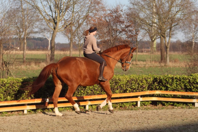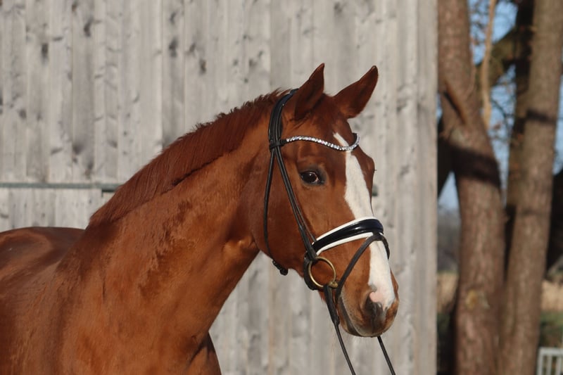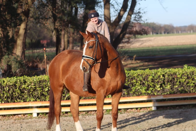 Rupicara ist eine tolle Stute von Royal Blend aus einer Werther Mutter. Sie ist brav im Umgang und war in der Dressur, im Springen und im Gelände auf dem Turnier unterwegs. Erfolgreich war sie auf A Niveau, ausgebildet ist sie auf L / M Niveau. Bei uns zeigte sie sich bisher auch mit schwächeren Reitern brav. Da sie derzeit nicht konstant im Training ist wird sie als Beistellpferd abgegeben. Derzeit ist sie bei uns Spielgefährte und Erzieherin für die Nachzucht, würde jedoch gerne nochmal "ihren Menschen" glücklich machen. Preis zzgl. MwSt. Es können ausschließlich telefonische Anfragen unter +49 174 3177567 beantwortet werden.