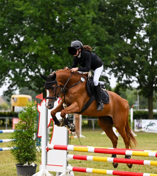 Hallo liezen, vanwege een reductie van de kudde zoekt Lotti een nieuw thuis. Lotti is zeer zelfverzekerd in het terrein en in het springen (ze springt altijd alles, ondanks haar dressuurafstamming). Ze ziet dressuurwerk als een noodzakelijk kwaad. Lotti heeft zich bewezen als fokmerrie en heeft enkele prachtige veulens gebaard. Bij ons was ze vooral samen met een 15-jarig meisje op wedstrijden en in het terrein. In augustus vorig jaar heeft ze een scheurtje opgelopen in het ondersteuningsbandje van de diepe buigpees. Dit heeft ze op de wei uit laten genezen en mag nu weer gewoon gereden worden. Bij ons staat ze echter vooral te wachten en heeft ze geen taak. (Vanwege deze blessure ook de prijs.) Lotti heeft go en is altijd enthousiast bij de zaak, geen slaapkop. Ze is een ongelooflijk mensgericht paard en een echte knuffelkont. Ik kijk ernaar uit om van jullie te horen. Plaats boven prijs