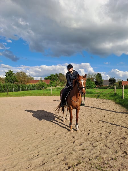 For sale is my 19-year-old Hanoverian mare (Chalan x Drosselklang II). She stands approximately 1.55 meters. This year, she gave birth to a healthy foal and proved to be very easy to handle during the foaling process. She accepted the foal immediately on the first attempt. Last year, she was ridden recreationally and consistently behaved well and calmly both in the arena and in the field. Due to foaling, she has not been ridden this year. She is very affectionate and friendly towards people. In her previous home, she was also used as a broodmare and was occasionally ridden in between. As a young horse, she is said to have been presented in show jumping competitions. Her foal will be weaned at the end of October, after which she is available for relocation.