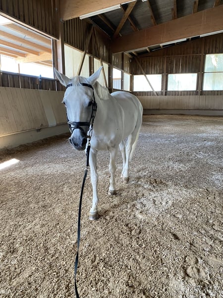 Verkaufe meine hübsche 19-jährige Hannoveraner Schimmelstute. Schweren Herzens verkaufe ich meine bald 19-jährige Schimmelstute. Abstimmung Calido I. Stockmaß knapp 1,70m. Sie ist bereits seit 14 Jahren in meinem Besitz, wurde 5-jährige von mir gekauft und kam davor direkt vom Züchter aus dem Norden. Sie hat damals eine erfolgreiche Stutenleistungsprüfung abgelegt und eine tolle springgezogene Abstammung mit Vermögen. Sie ist eingetragene Zuchtstute. Ich selbst habe sie einige Jahre Turnier geritten siegreich bis L-Springen. Auch auf vielen Springlehrgängen waren wir unterwegs. Nun ist sie seit einigen Jahren Freizeitpferd und wird aktuell von mir und meiner Reitbeteiligung 3-4 mal die Woche geritten. Sie ist kein Anfängerpferd! Sensibel und gerne mal etwas schreckhaft und doch hat sie ihr Herz am richtigen Fleck. Ruhe und Geduld haben sich immer ausbezahlt. Aufgrund nebenberuflich Studium, Corona-Zeit und geändertem Interesse hab ich das Turnierreiten aufgehört, da es zeitlich einfach nicht mehr machbar war. Da sie nun bald 19 Jahre ist wünsche ich mir für sie einen schönen Platz als Freizeitpferd. Auch als Zuchtstute oder langfristig mal als Beistellpferd wäre denkbar mit 24/7 Weidezugang. Sie liebt es auch einfach gut umsorgt zu werden und wäre auch ohne reiten glücklich. Bewegung braucht sie aber trotzdem- longieren, freilaufen lassen etc. Meine Stute hat seit vielen Jahren chronisches Asthma(überempfindlich auf Staub),was uns aber beim reiten und im Alltag nie gehindert hat. Gute Stallbedingungen, passendes Futter sind hier das A und O. Prophylaktisch inhalieren wir seit einigen Jahren mit einfacher Kochsalzlösung und dadurch haben wir seit einigen Jahren keinen Tierarzt mehr gebraucht. Das funktioniert prima und hilft uns sehr gut. Ansonsten ist sie immer fit, nie Probleme mit Lahmheit etc. Regelmäßig beim Zahnarzt, ebenso regelmäßig entwurmt. Sie ist schmiedefromm, verladefromm auch geländetauglich. Hier hat sie trotzdem gerne auch mal eine Begleitung dabei (egal ob zu Fuß, auf dem Fahrrad oder als Pferd ;-))da sie doch ab und an mal glotz oder etwas gruselig findet, dann ist sie aber super entspannt, egal ob Schritt, Trab oder Galopp. Allein sein ist für sie aber überhaupt kein Problem ( Stall, Anhänger, Koppel…). Auf der Koppel ist sie brav und war sowohl mit Stuten als auch mit Wallachen draußen. Da ich ihr zeitlich einfach nicht mehr gerecht werden kann, wie ich es gerne hätte und vor einigen Monaten Mama geworden bin und sich nun die Prioritäten nochmal geändert haben möchte ich sie in gute Hände abgeben, damit sie die Aufmerksamkeit bekommt, die sie verdient hat. Das Zubehör wie Sattel, Inhalator etc. würde ich natürlich alles, wenn gewünscht, mitverkaufen. Platz vor Preis! Bei ernsthaftem Interesse gerne PN an mich. Vielen Dank!