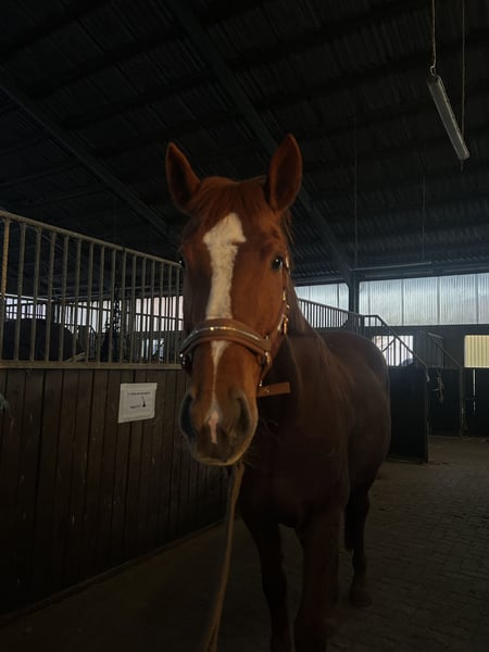 Yegua Hannoverana, nacida en mayo de 2007, con una altura de 1,73 m. Debido a artrosis en la articulación del carpo izquierdo, solo es apta para montar de forma limitada, aunque también resulta interesante para la reproducción. Pedigree: Embassy I / Weltruhm. Enny proviene del mundo del salto (hasta nivel L) y actualmente se monta solo como pasatiempo. Es importante montar con suavidad y solo cuando no presenta cojeras. En 2016 tuvo un potrillo y lo afrontó de manera excelente. Enny conoce tanto el establo abierto como las boxes, así como manadas mixtas y grupos solo de yeguas, en las que suele tener un rango alto en la jerarquía. Se siente más cómoda en una box con paddock. También es importante para ella que pase suficiente tiempo en manada. Es tranquila tanto en el manejo en tierra como en la montura y, una vez que se ha ganado su confianza, hace casi todo con gusto. Siempre intenta complacer. Conoce el trabajo en tierra y también hace una buena labor en la cuerda. Busco a alguien que quiera mantenerla activa de forma variada. No es adecuada para niños ni principiantes, necesita a alguien que la desafíe y le brinde seguridad, pero siempre de manera justa.