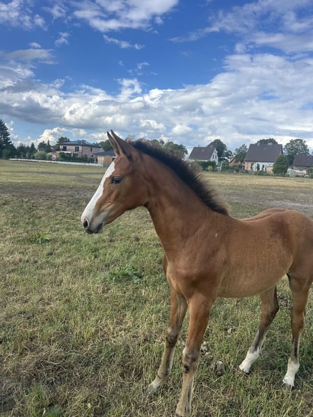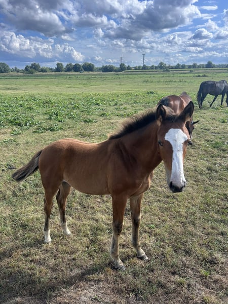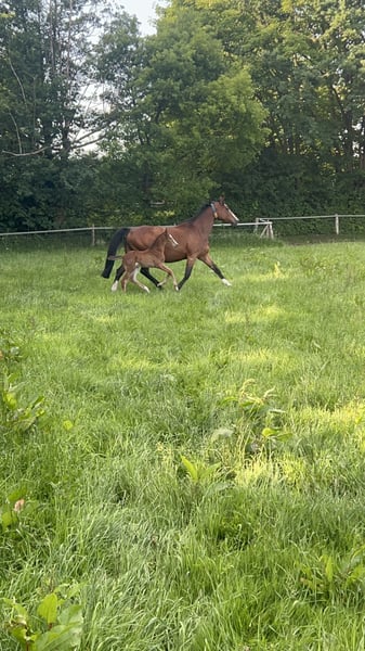 Schweren Herzens, haben wir uns dazu entschieden unser im Mai/25 geborenes Stutfohlen zu verkaufen. Sie ist ein absolut freundliches und aufgeschlossenes Fohlen, mit top Bewegungen. Wir waren letztes Jahr 2x mit ihr auf Fohlenschauen, wobei sie einmal den 3. Platz von 25 Fohlen gemacht hat. Besonders gut bewertet wurde ihr ausdruckstarker Galopp und Schritt. Sie kennt das Fahren mit dem Anhänger, geht problemlos zum Schmied. Kennt das Führen und Putzen, und alles was zum Fohlen ABC dazugehört. Sie kennt es nachts in der Box zu stehen sowie 24/7 auf der Wiese wo sie jetzt auch steht. Sie ist im Umgang mit ihren Fohlenbuddys überaus freundlich und geht Ärger aus dem Weg. Die Mutterstute befindet sich ebenfalls in unserem Besitz, und kann Vorort auch gerne mit besichtigt werden. Ihre Mutter weist großes Talent für den Springsport auf, wo sie bis zu Klasse M gefördert wurde. Ebenso in der Dressur befindet sie sich auf einem L Niveau und zeigt auch hier Talent. Wir suchen für die Maus, ein 5* Zuhause. Platz vor Preis! Es handelt sich NICHT um einen Notverkauf und sie wird ausschließlich in nachweislich gute Hände abgegeben.