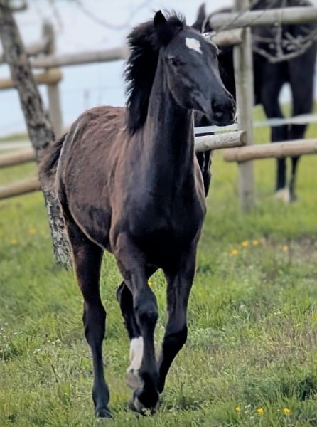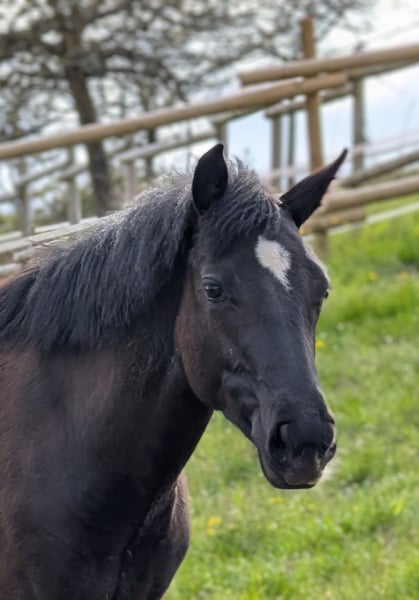 À vendre : Lilly Lumpa (née le 09/07/2025), une magnifique jument Hannoverienne qui séduit par son type noble, ses bases correctes et son charisme naturel. Lilly se présente actuellement en tant que pouliche sevrée, dans un format moderne et sportif. Si vous recherchez une partenaire expressive pour le dressage futur et accordez de l’importance à une relation de confiance dès le départ, cette charmante jument représente une pierre brute avec un potentiel sportif exceptionnel. Grâce à son format, elle constitue le choix idéal pour des cavalières ou jeunes cavaliers ambitieux à la recherche d’un jeune cheval de qualité à éduquer soi-même, qui convainc par sa légèreté et son harmonie. Origines & qualité Lilly possède un pedigree de premier ordre : Père : le cheval stallion d’exception Lord Europe, reconnu pour ses allures exceptionnelles et sa facilité de conduite. Mère : la jument principale du stud-book Henrike (par Heinrich Heine – Don Frederico). Elle se distingue par une valeur de sélection en dressage (TSP) de 114 et a transmis à Lilly son type élégant ainsi que ses allures correctes. Caractère & stade de développement En tant que pouliche sevrée, Lilly est déjà parfaitement préparée pour la prochaine étape de sa vie : Manière : très proche de l’homme, elle accepte la longe, la conduite et le pansage avec confiance. Élevage : elle a été élevée dans des conditions adaptées, se montre très sociable et éveillée en groupe. Apparence : noire avec un étoile, une étoile en front et un postérieur blanc. Données principales Nom : Lilly Lumpa Date de naissance : 09/07/2025 Statut : pouliche sevrée Lilly est pucée, enregistrée auprès de la Fédération Hannoverienne et peut dès à présent rejoindre sa nouvelle famille.