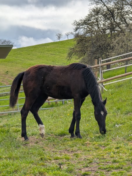 For sale is Lilly Lumpa (born July 9, 2025), a stunning Hanoverian mare distinguished by her noble type, correct conformation, and charming presence. Lilly currently presents as a foal with a modern, athletic build. If you are looking for an expressive partner for future dressage competitions and value a trusting partnership from the very beginning, this charming mare is a raw diamond with excellent sporting potential. Thanks to her size, she is the ideal choice for riders or ambitious junior riders seeking a quality young horse to bring along themselves, impressing with ease and harmony. Pedigree & Quality Lilly’s genetics are top-notch: Sire: The exceptional stallion Lord Europe, renowned for outstanding gaits and rideability. Dam: The main mare Henrike (by Heinrich Heine – Don Frederico). She boasts a dressage breeding value (TSP) of 114 and has passed on Lilly’s elegant type and correct basic gaits. Character & Developmental Status As a foal, Lilly is already well-prepared for her next life stage: Handling: She is very people-oriented, halter-trained, leads, and is easy to groom. Husbandry: She has been raised appropriately and shows herself to be very social and lively within a herd. Appearance: Dark bay with a star and snip, plus a white hind leg. Key Data at a Glance Name: Lilly Lumpa Date of Birth: July 9, 2025 Status: Foal Lilly is microchipped, registered with the Hanoverian Verband, and can move into her new home immediately.