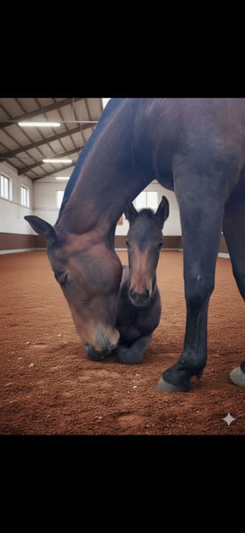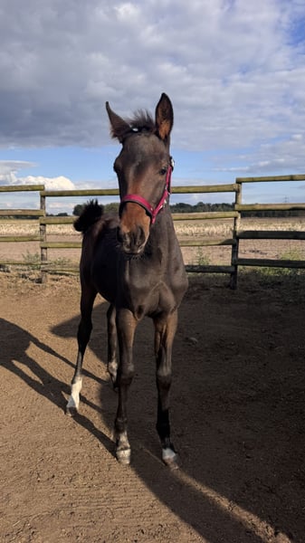 Hannoverian Arabian Mare – Versatility Talent Weltano / Weltmeier / Gloster For sale is an elegant and promising Hannoverian mare, born in 2025. With her dark bay coat and a height of 16.1 hh, she combines classic beauty with impressive size. This talented mare is well-suited for eventing and already demonstrates promising abilities. She is friendly, eager to learn, and has a pronounced temperament, making her an ideal partner for ambitious riders. Please feel free to contact me for more information or to arrange a viewing.