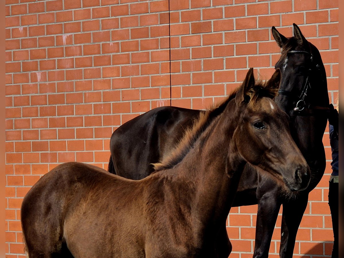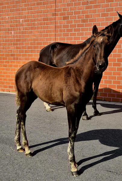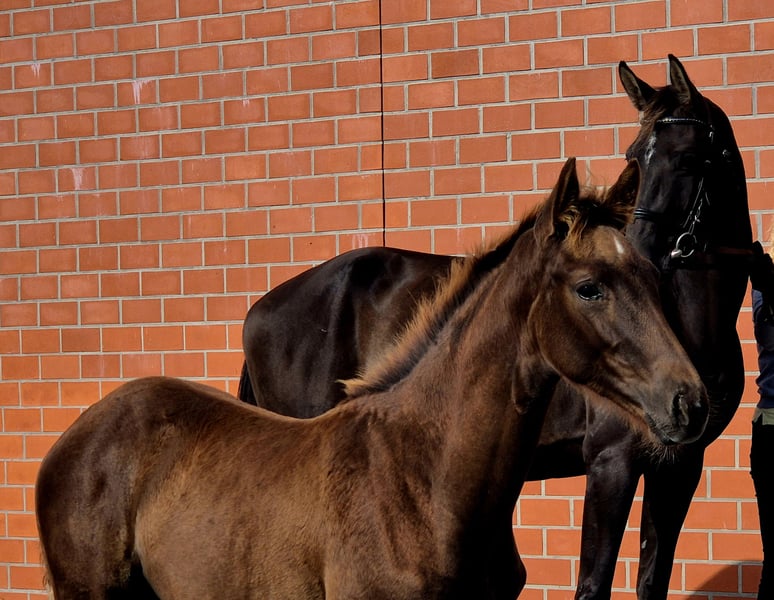 *** Bon Matilda *** For Sale! For sale is a promising Hanoverian dark chestnut mare, born on May 27, 2025. With a final height of 170 cm, she offers an ideal size for ambitious riders. This talented mare has VERY GOOD elastic gaits. Her friendly and open nature makes her a great offer for sport and breeding. She is kept in a species-appropriate manner, well-socialized, and is familiar with handling other horses. For further information or to arrange a viewing appointment, please feel free to contact me. Viewings are possible by appointment. **Contact:** [Your contact details] We look forward to your inquiry!