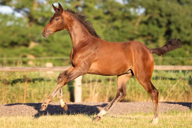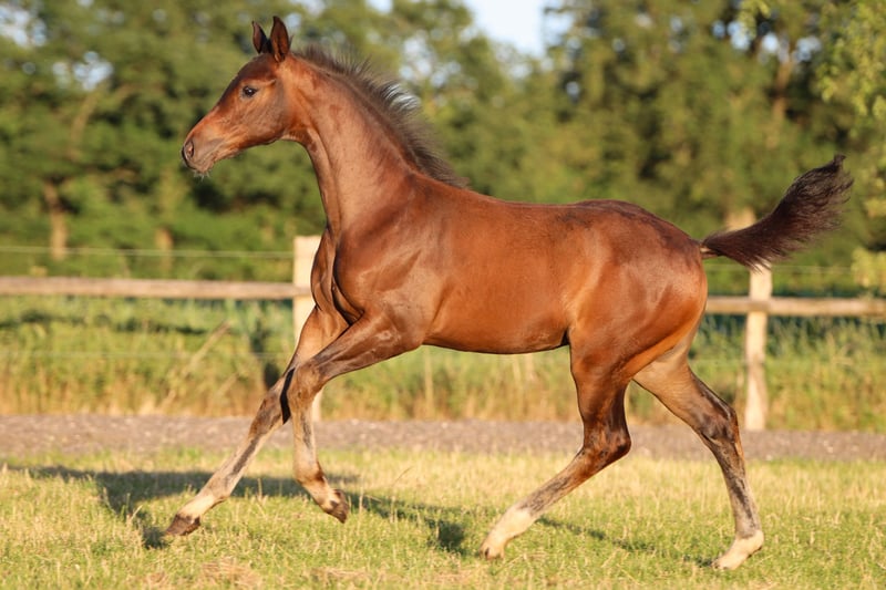 Exceptional filly with a promising pedigree, showing a friendly, curious, and open demeanor in daily handling. She already impresses with three above-average basic gaits. Her correct conformation and friendly, open character make her a true prospect for the future in dressage. She is healthy, well-developed, and is growing up in a species-appropriate environment. Her sire, St. Emilion, is a modern, high-performance Oldenburg premium stallion with an international pedigree, excellent basic gaits, and high breeding value. He represents the highest dressage quality and is already setting standards in breeding and sport. He captivates with elegance, rhythm, and impulsion, as well as a first-class pedigree that leaves nothing to be desired. St. Emilion is considered exceptionally rideable, eager to perform, and cooperative. He impresses with a natural uphill tendency, energetic take-off, and relaxation. The dam is by Don Frederico and was herself successful up to L-level dressage, further emphasizing the athletic quality of this foal. For any questions, please feel free to contact us by phone or WhatsApp at 0173/6048021.