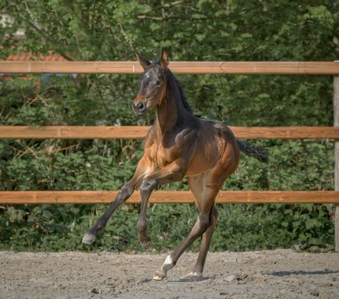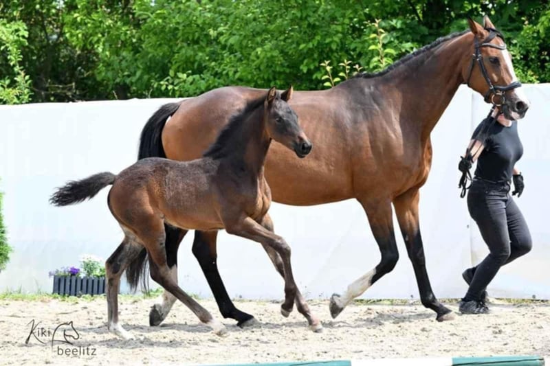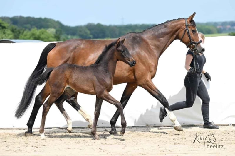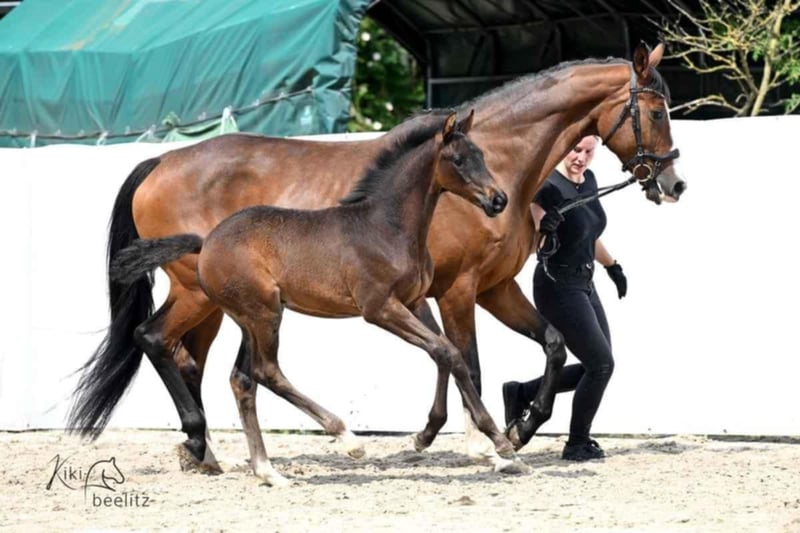 "Nalegra" is a typy filly by Nalegro. Nalegro himself has competed in the finals of the Young Horse World Championships with Charlotte Fry for the past two years and is on his way to the big sport. His sire is Painted Black by Garibaldi, who was also successful at FEI 5-star level. On the maternal side, Nalegro descends from the recently deceased top stallion Negro. Nalegra's dam is a daughter of Herbstkönig x Don Primero. She completed her SLP after about 10 weeks under saddle with an average score of 8-8.5 before she went into breeding with us. Another raising option is possible with us. You can get a small impression of our hobby breeding on the internet at www.hannoveranerzucht-pickbrenner.de.