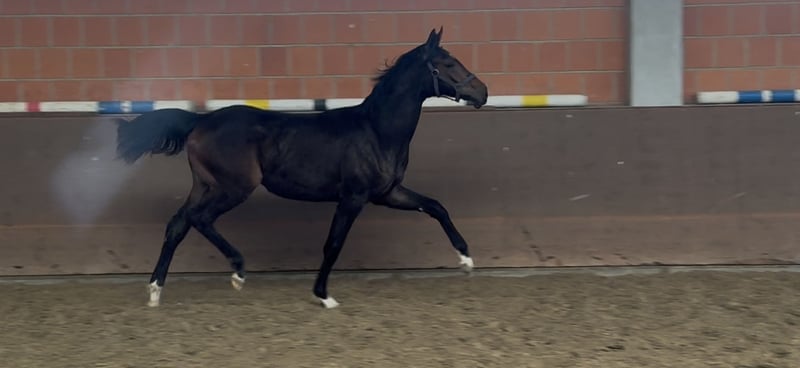 Vielversprechende Jährlingsstute sucht ein förderndes Zuhause. Die Stute ist sehr bewegungsstark und empfiehlt sich für einen späteren Einsatz im großen Viereck!! Sie ist sehr unkompliziert und den täglichen Umgang gewöhnt. Führen, Schmied und verladen ist für sie kein Problem. Wegen Betriebsauflösung abzugeben. Bei Interesse gerne einfach telefonisch oder per WhatsApp melden unter 0172-2942839 Aufzuchtsplatz kann übernommen werden!