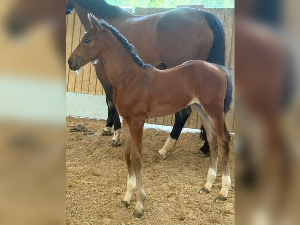 This friendly young mare, born on May 28, 2025, impresses not only with her excellent temperament but also with her movement, where her talents in the show jumping course are already evident, especially her canter should be highlighted. Her sire, Easy Jet, recently gained attention with his foal evaluation, where his offspring were described as long-legged, harmoniously built, with beautiful faces. In movement, they are relaxed and active, as one would expect from a foal destined for show jumping, according to breeding manager Per Eitenmüller. Easy Jet also demonstrates his talent in sport, currently earning gold ribbons in development classes as a four-year-old. Her dam, Violetta, already produced a successful 1.40 m show jumper, Budak's Casina Berlin. The dam line also includes the approved stallions Chaloc and Columbus Z.