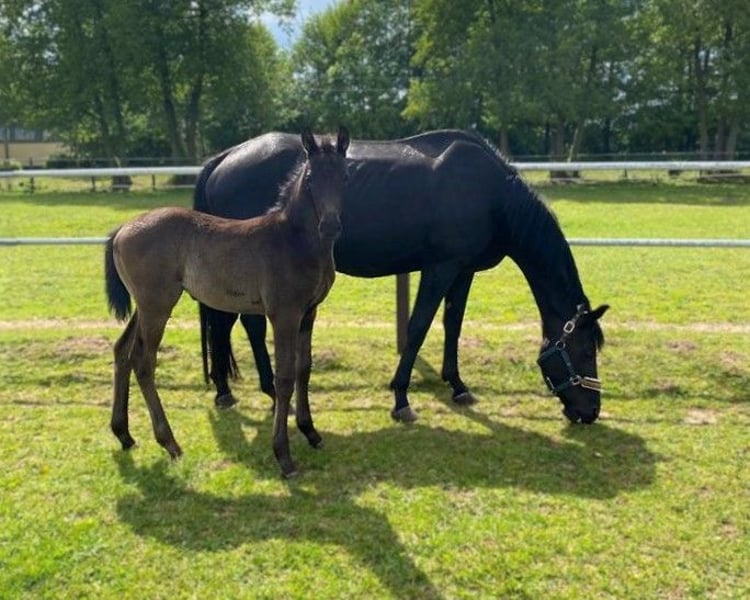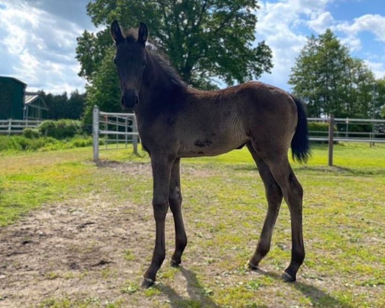 Typical premium foal with champion genetics – best foal of the Prignitz Horse Breeding Association! This beautiful foal has been rated with an outstanding 25.5 points and carries the title of Champion Foal 2025 of the Prignitz Horse Breeding Association. It impresses with exceptional movement quality, modern type, correct conformation, and an elegant appearance in a dark coat. Charm, expression, and presence make it a true eye-catcher. First-class pedigree: The mother is a premium mare, whose previous offspring have all been awarded – a testament to the consistent breeding quality of this line. Through Don Bolero by Donnerhall, she brings valuable Grand Prix genetics into the lineage. The sire is the still young Most Wanted Nero by Bellin. He is one of the most promising sons of the great Morricone. Since 2025, he has been exclusively promoted by Leoni Richter, after impressing with consistently high scores in his first dressage horse tests and placing regularly. We are convinced that Most Wanted Nero's exceptional talent and rideability will also be passed on to this foal. The foal is growing up under the best conditions, with loving care, plenty of turnout, regular hoof care, and proper deworming. If desired, the sale of both mare and foal as a pair is also possible. We look forward to your interest and are happy to arrange a personal meeting. Feel free to contact us via WhatsApp: +49 176 55323449.
