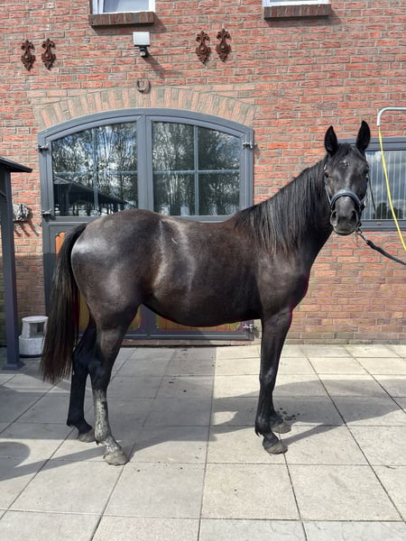 Hannoverian mare "Diva" – Young prospect with top pedigree For sale is our promising Hannoverian mare, born in 2023, sired by Diacontinus x Black Jack. Diva impresses with a correct conformation and a very people-oriented character. She is curious, eager to work, and balanced in daily handling. She is regularly groomed and is familiar with groundwork. She always approaches humans in a friendly and attentive manner, is socially integrated in the herd, and shows a healthy amount of temperament. Diva will be a gray. Housing: At night in a loose box with a paddock, together with a similarly aged mare. During the day in a mixed herd on paddock and pasture (with mares & geldings). Diva is only offered to supportive, horse-friendly, and experienced hands with a long-term perspective. A lifelong home with a constant caregiver is particularly important to us. Further photos and videos via WhatsApp: 0176 45857615